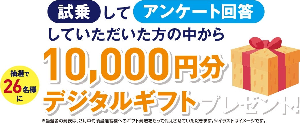 試乗してアンケートに答えると抽選でデジタルギフト10,000円が当たります!