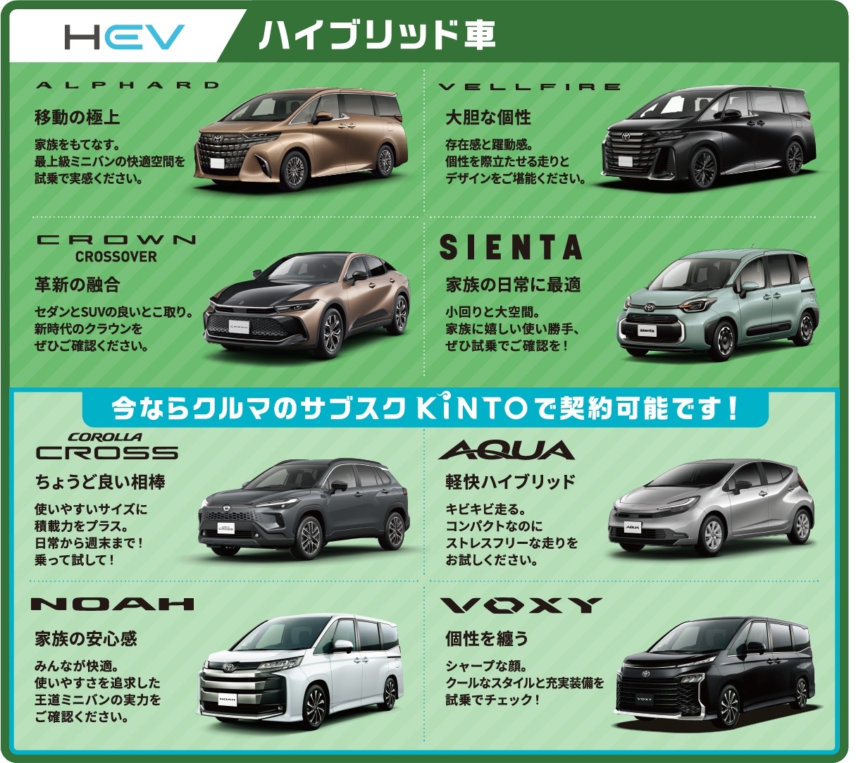 ご希望の際は、当日の試乗車のラインナップ確認も含め、事前のご予約をお勧めいたします。